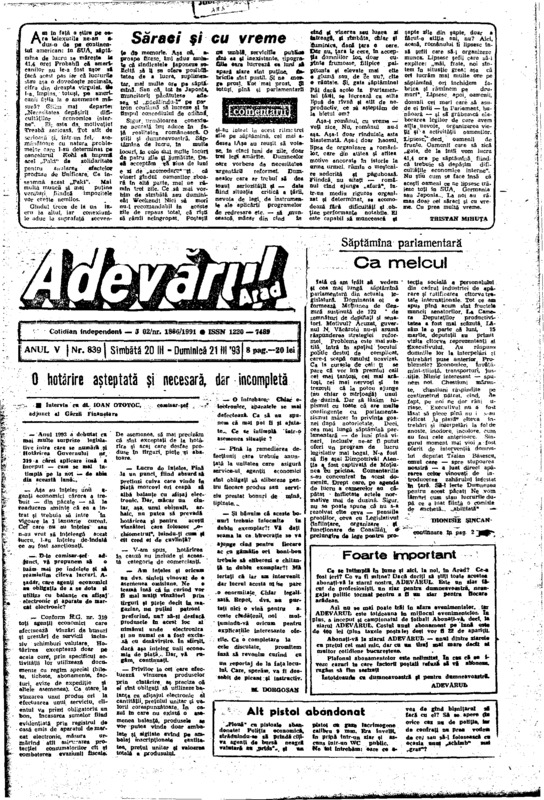 Adevărul, anul V, nr. 839, 1993-03-20/21