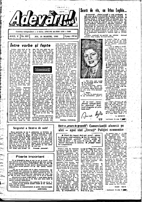 Adevărul, anul V, nr. 837, 1993-03-18