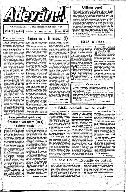 Adevărul, anul V, nr. 847, 1993-04-01