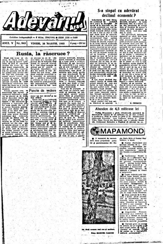 Adevărul, anul V, nr. 843, 1993-03-26