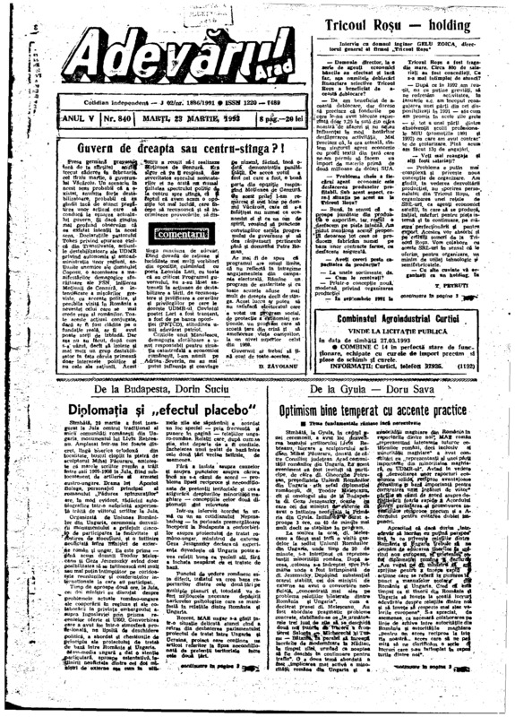 Adevărul, anul V, nr. 840, 1993-03-23