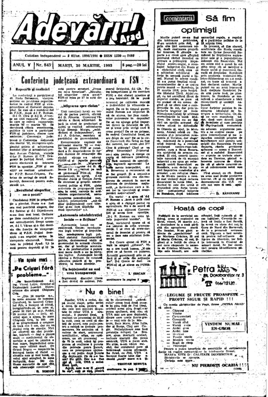 Adevărul, anul V, nr. 845, 1993-03-30