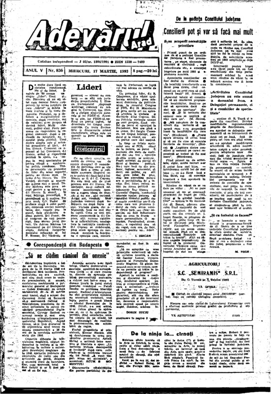 Adevărul, anul V, nr. 836, 1993-03-17