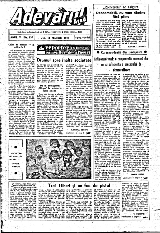 Adevărul, anul V, nr. 832, 1993-03-11