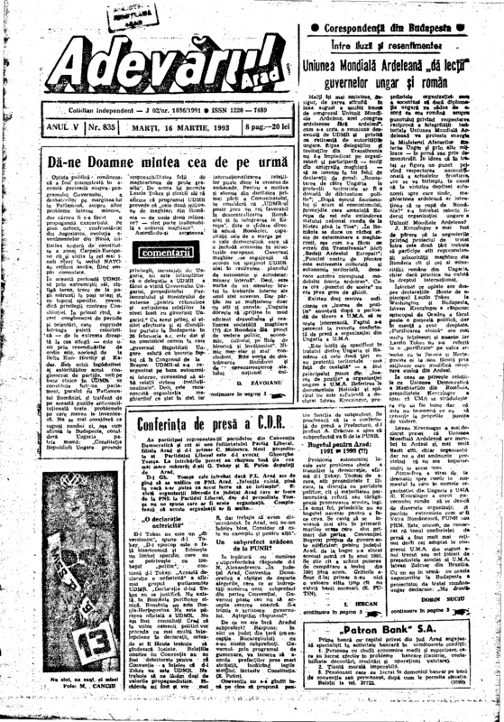 Adevărul, anul V, nr. 835, 1993-03-16