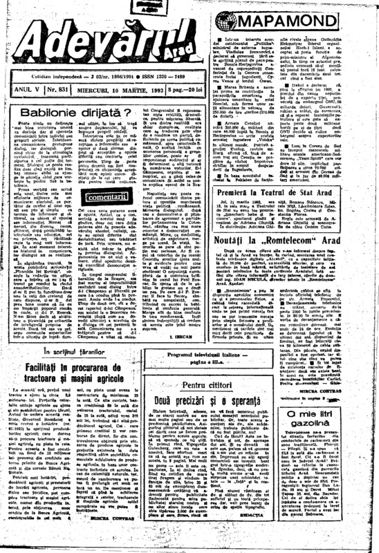 Adevărul, anul V, nr. 831, 1993-03-10