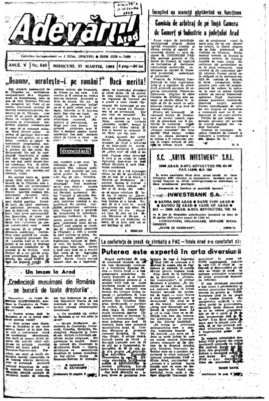 Adevărul, anul V, nr. 846, 1993-03-31