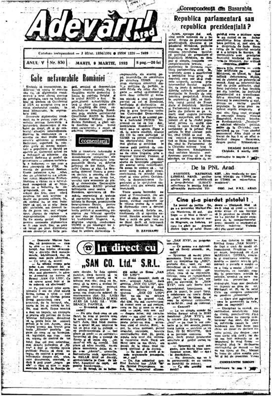 Adevărul, anul V, nr. 830, 1993-03-09