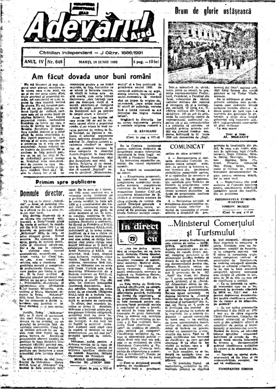 Adevărul, anul IV, nr. 648, 1992-06-16