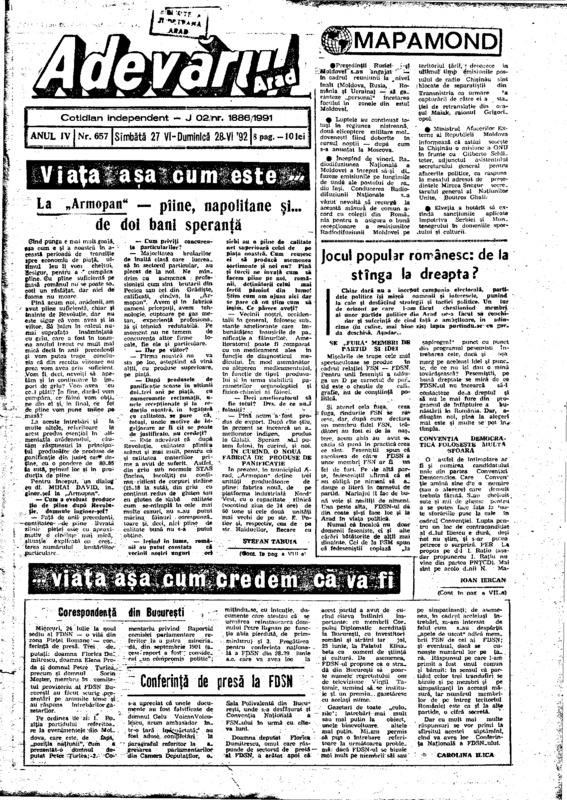 Adevărul, anul IV, nr. 657, 1992-06-27/28