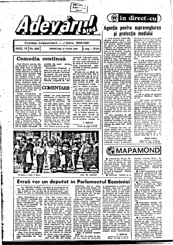 Adevărul, anul IV, nr. 649, 1992-06-17