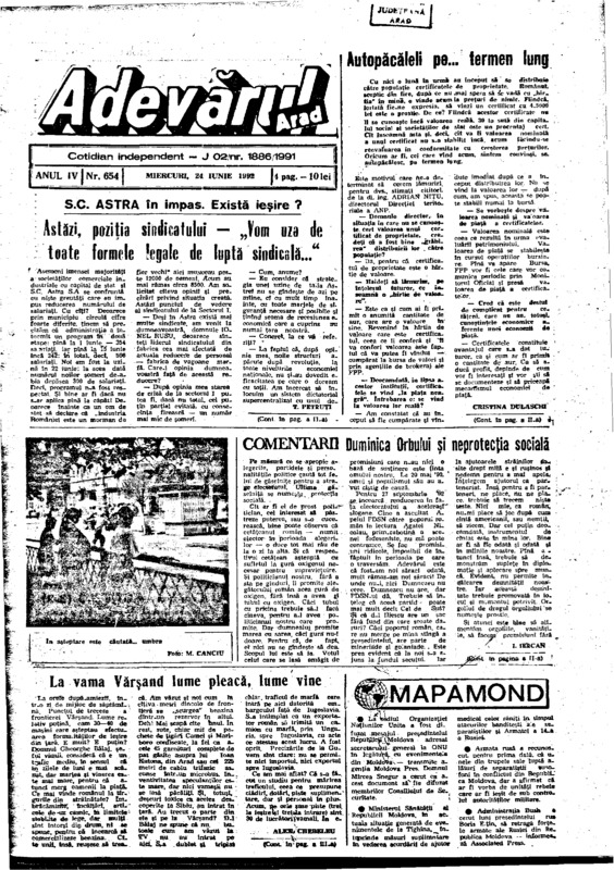 Adevărul, anul IV, nr. 654, 1992-06-24