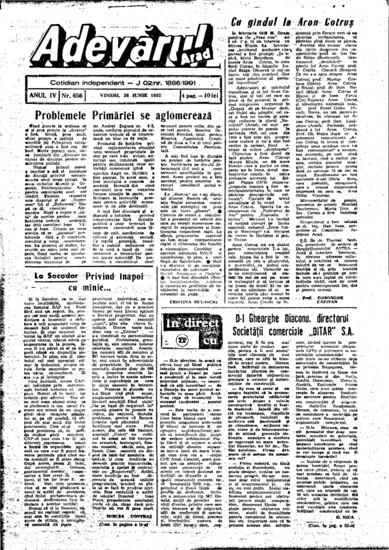 Adevărul, anul IV, nr. 656, 1992-06-26