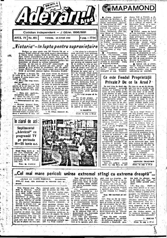 Adevărul, anul IV, nr. 651, 1992-06-19