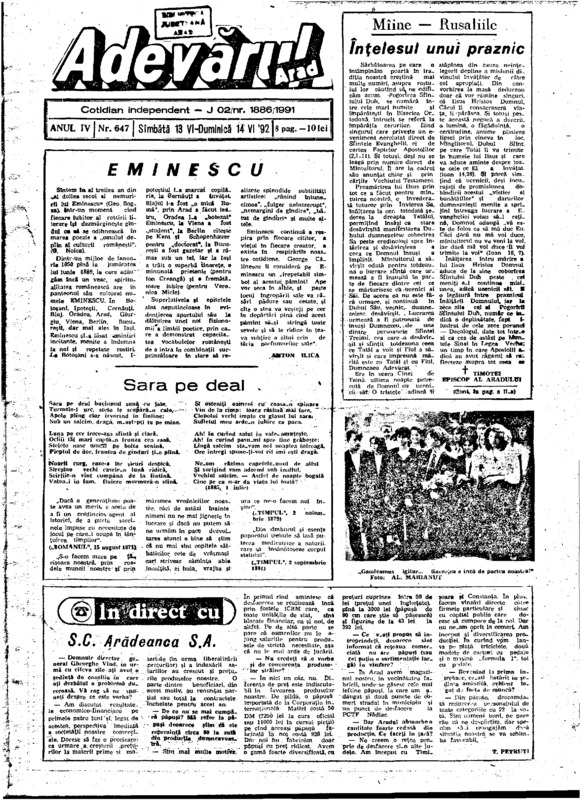 Adevărul, anul IV, nr. 647, 1992-06-13/14