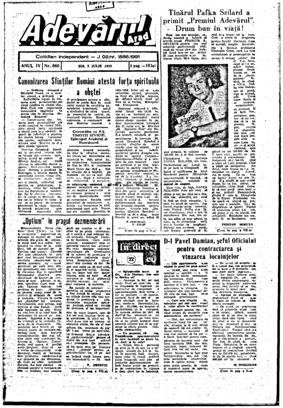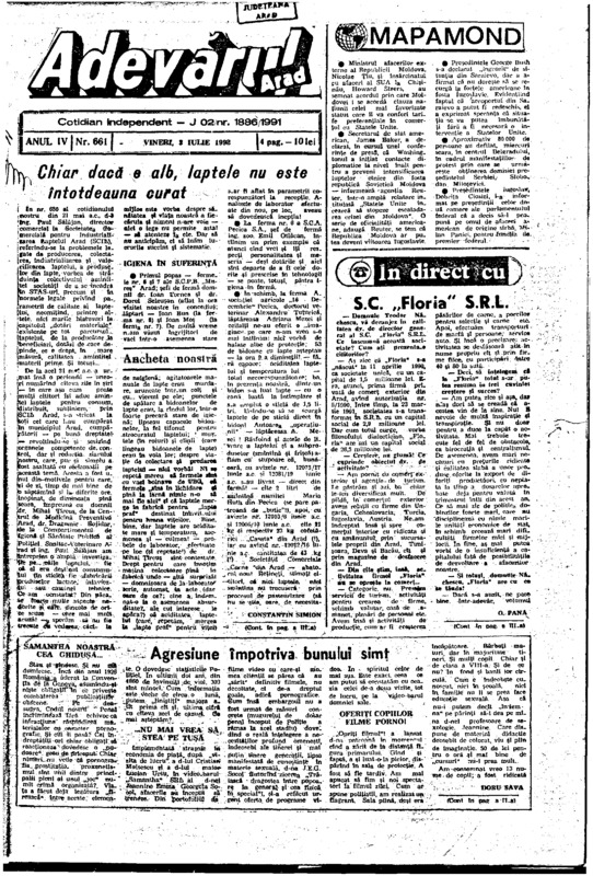 Adevărul, anul IV, nr. 660, 1992-07-02