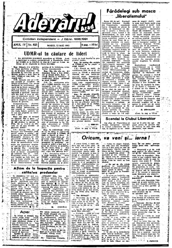 Adevărul, anul IV, nr. 623, 1992-05-12