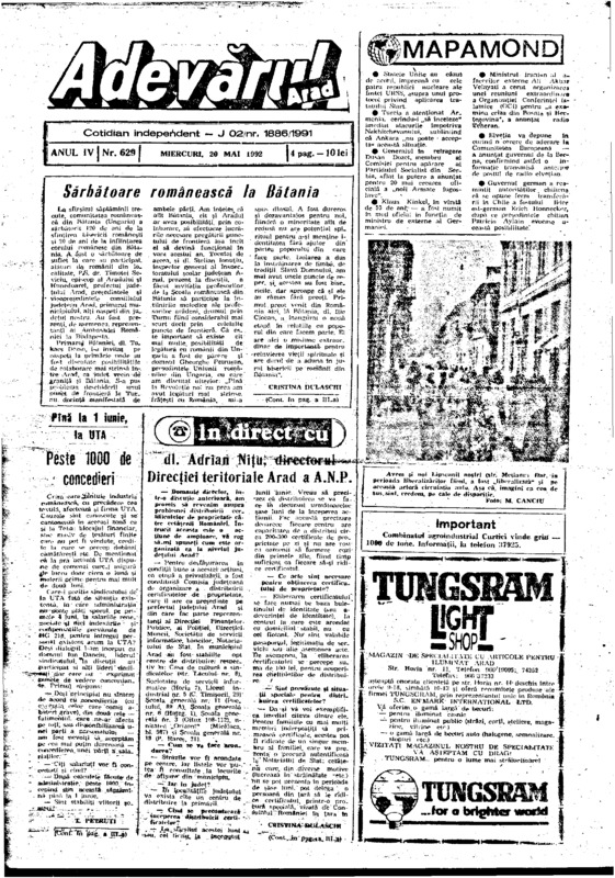 Adevărul, anul IV, nr. 629, 1992-05-20
