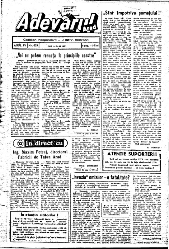 Adevărul, anul IV, nr. 625, 1992-05-14
