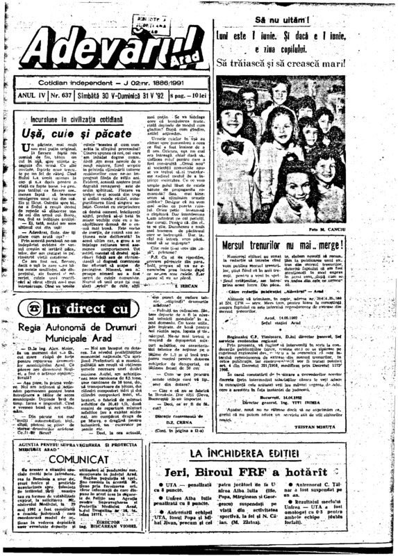 Adevărul, anul IV, nr. 637, 1992-05-30/31