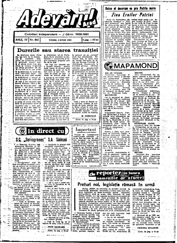 Adevărul, anul IV, nr. 641, 1992-06-05