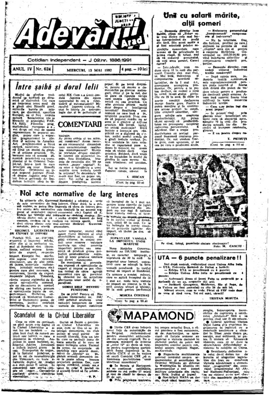 Adevărul, anul IV, nr. 624, 1992-05-13