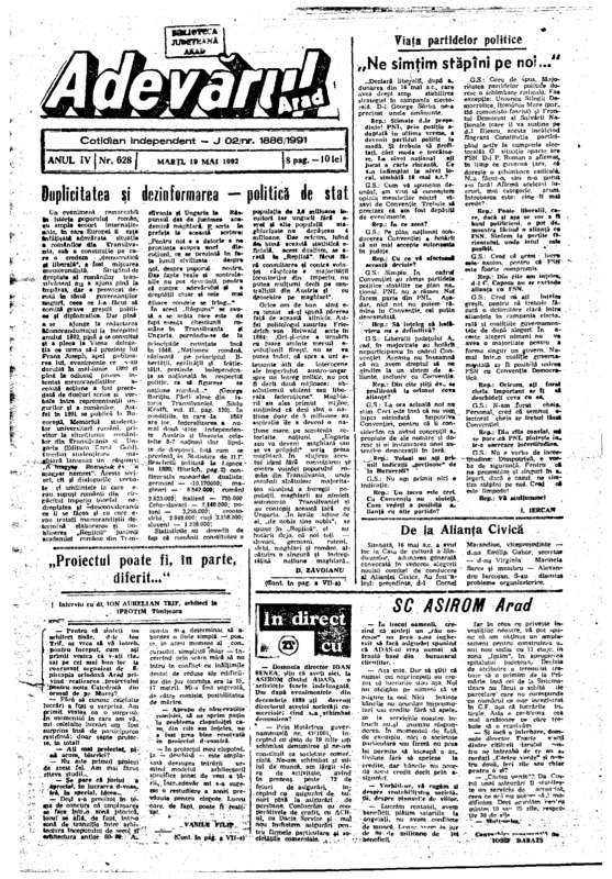 Adevărul, anul IV, nr. 628, 1992-05-19