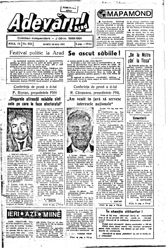 Adevărul, anul IV, nr. 633, 1992-05-26