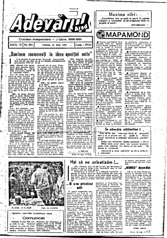 Adevărul, anul IV, nr. 630, 1992-05-21