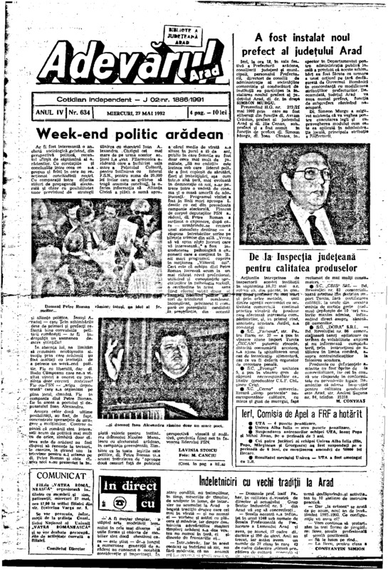 Adevărul, anul IV, nr. 634, 1992-05-27