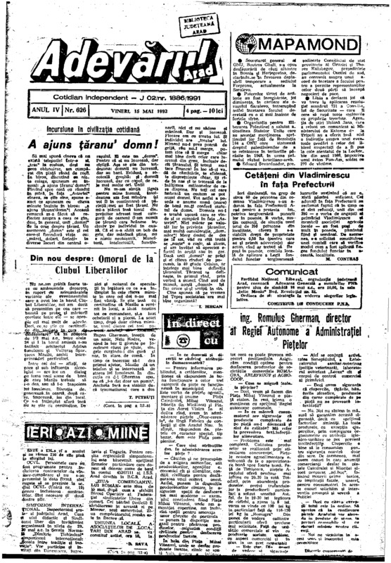 Adevărul, anul IV, nr. 626, 1992-05-15