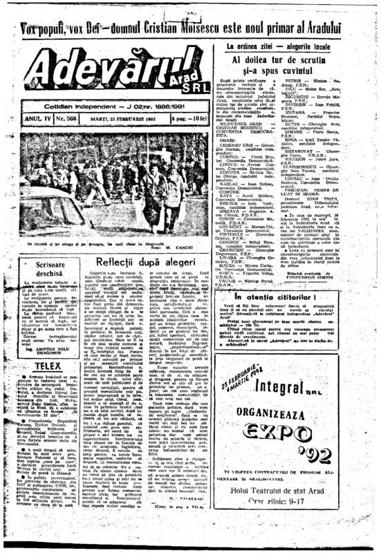 Adevărul, anul IV, nr. 568, 1992-02-25