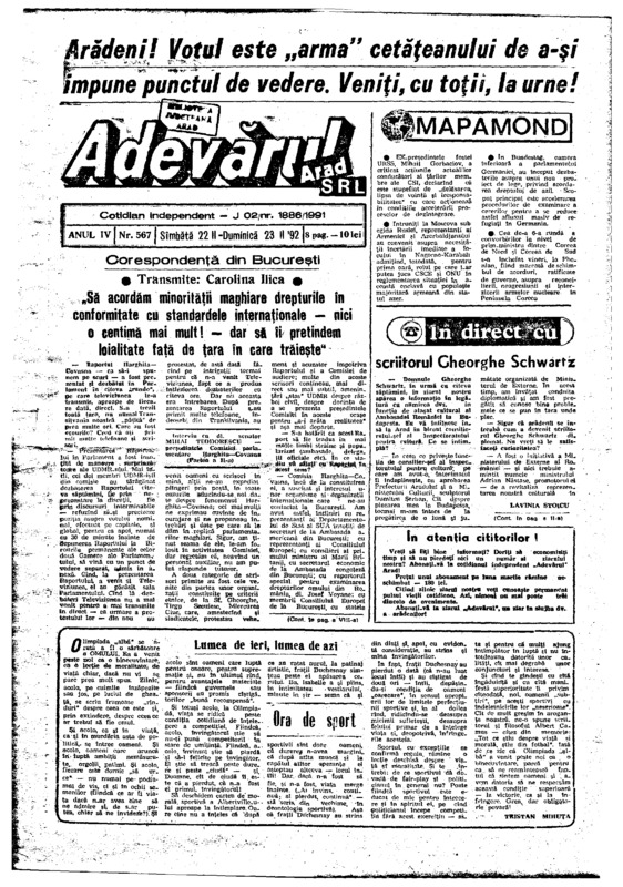 Adevărul, anul IV, nr. 567, 1992-02-22/23