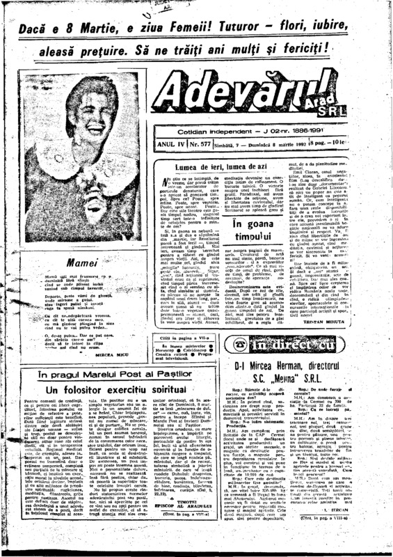 Adevărul, anul IV, nr. 577, 1992-03-07/08
