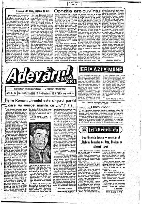 Adevărul, anul IV, nr. 562, 1992-02-15/16