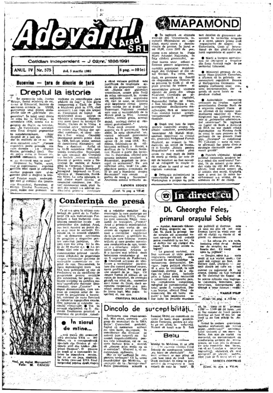 Adevărul, anul IV, nr. 575, 1992-03-05