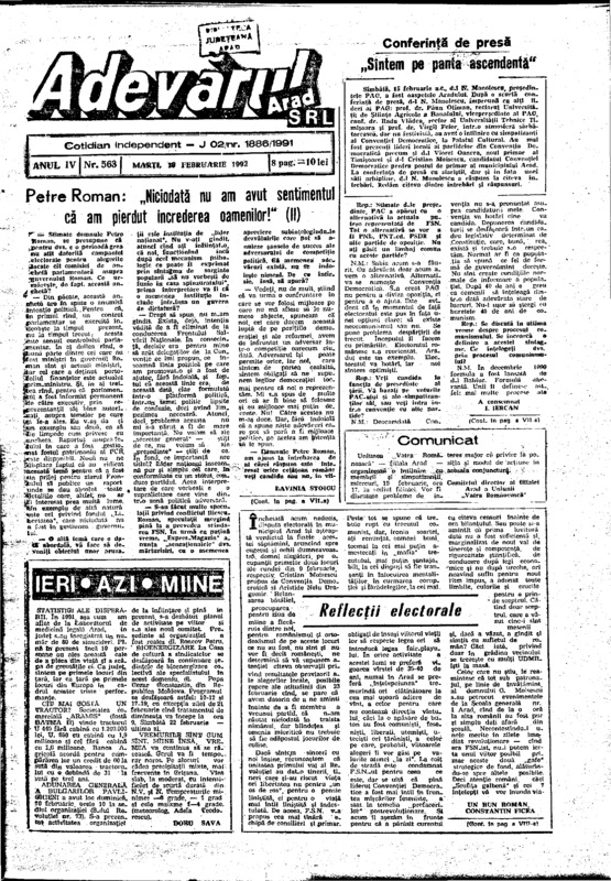 Adevărul, anul IV, nr. 563, 1992-02-18