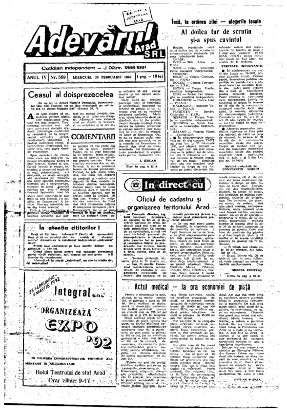 Adevărul, anul IV, nr. 569, 1992-02-26