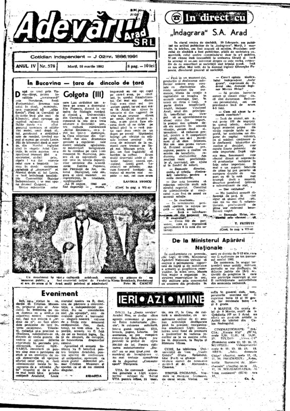 Adevărul, anul IV, nr. 578, 1992-03-10