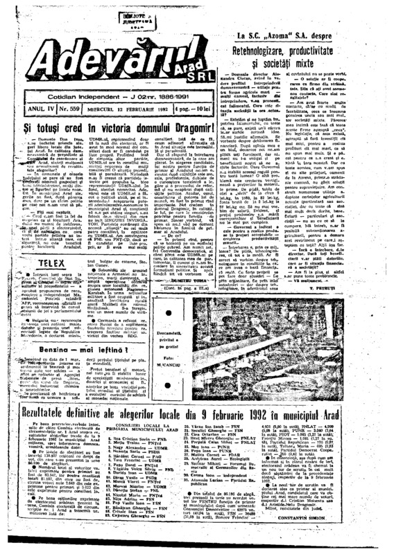 Adevărul, anul IV, nr. 559, 1992-02-12