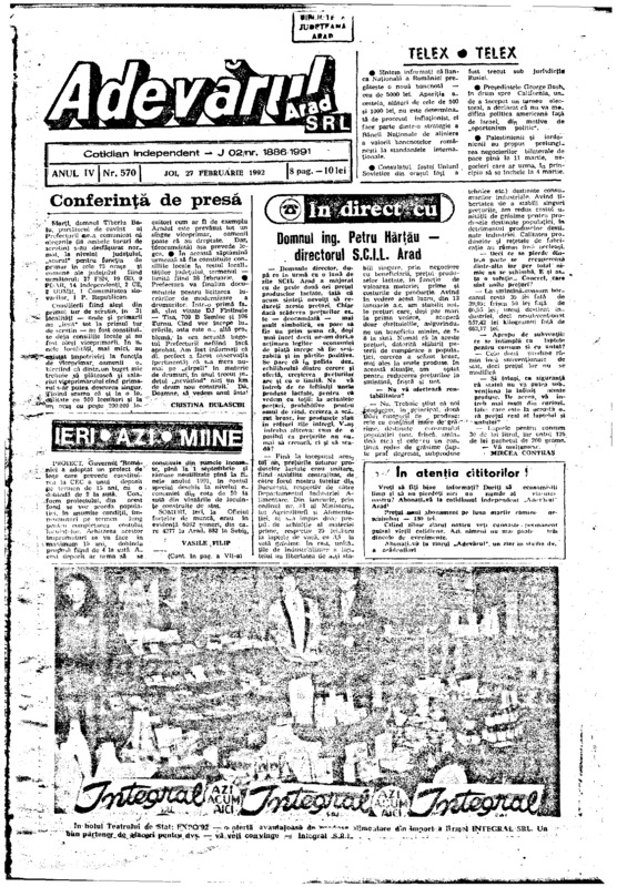 Adevărul, anul IV, nr. 570, 1992-02-27