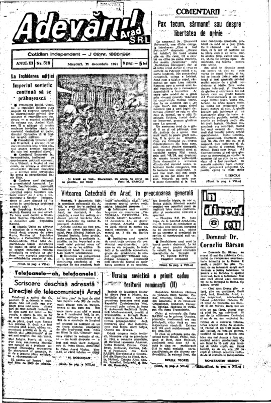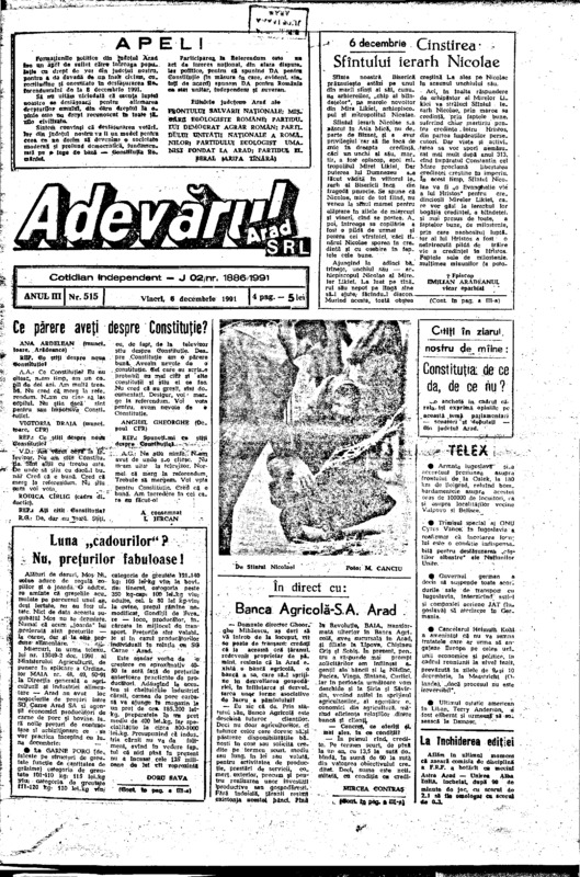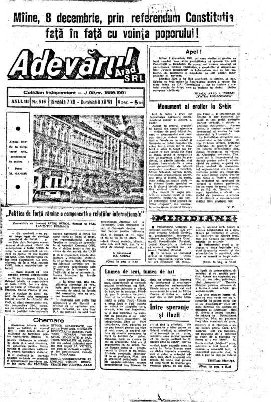 Adevărul, anul III, nr. 516, 1991-12-07/08