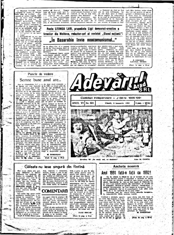 Adevărul, anul IV, nr. 531, 1992-01-03