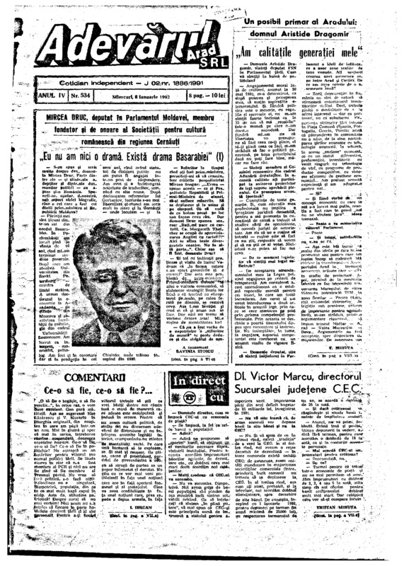 Adevărul, anul IV, nr. 534, 1992-01-08