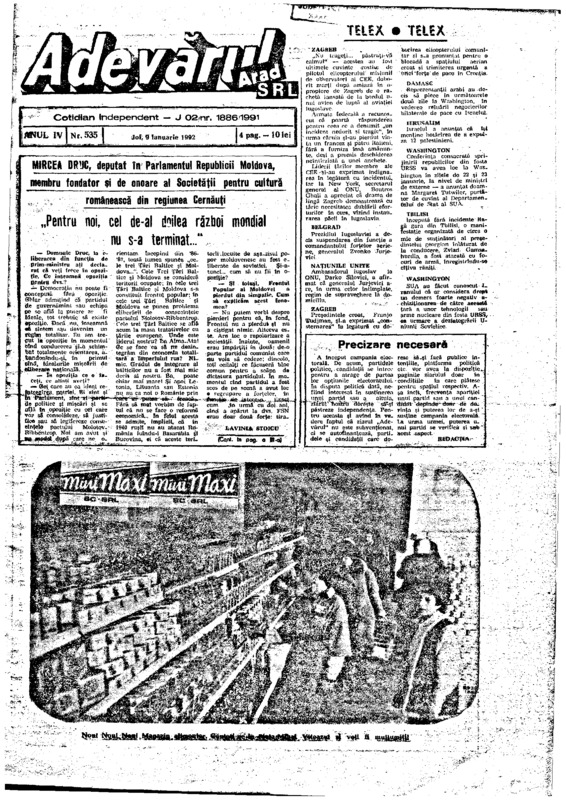 Adevărul, anul IV, nr. 535, 1992-01-09