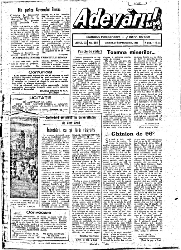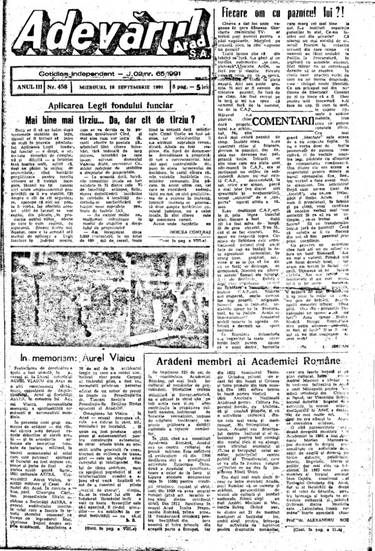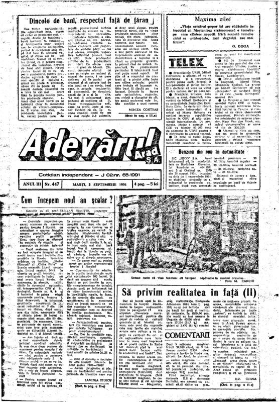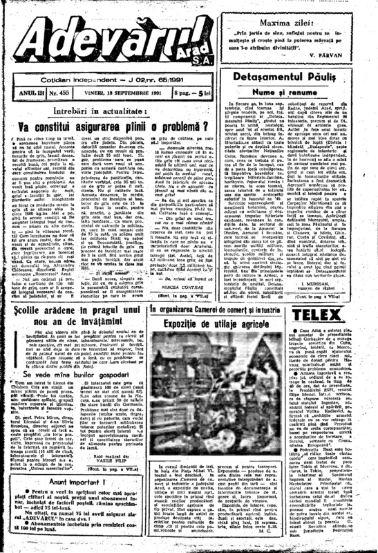 Adevărul, anul III, nr. 456, 1991-09-14/15