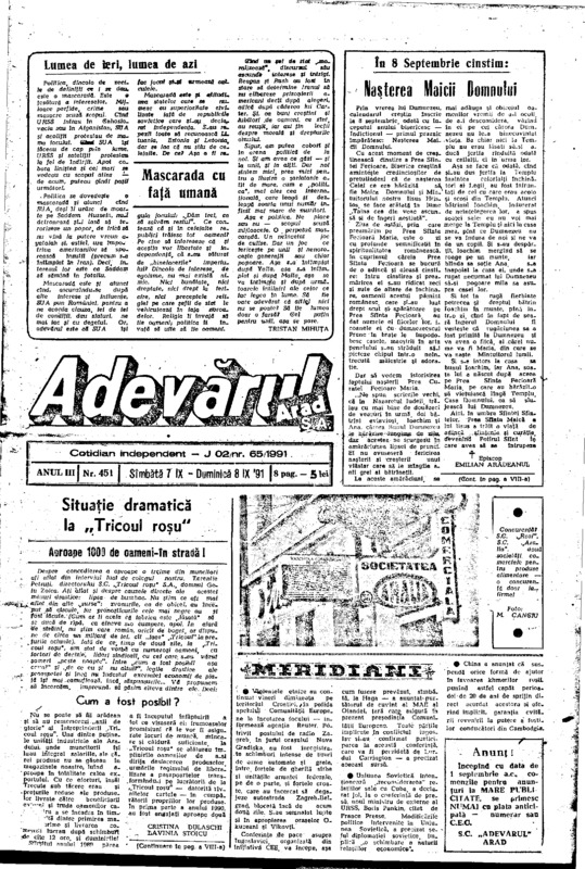 Adevărul, anul III, nr. 451, 1991-09-07/08