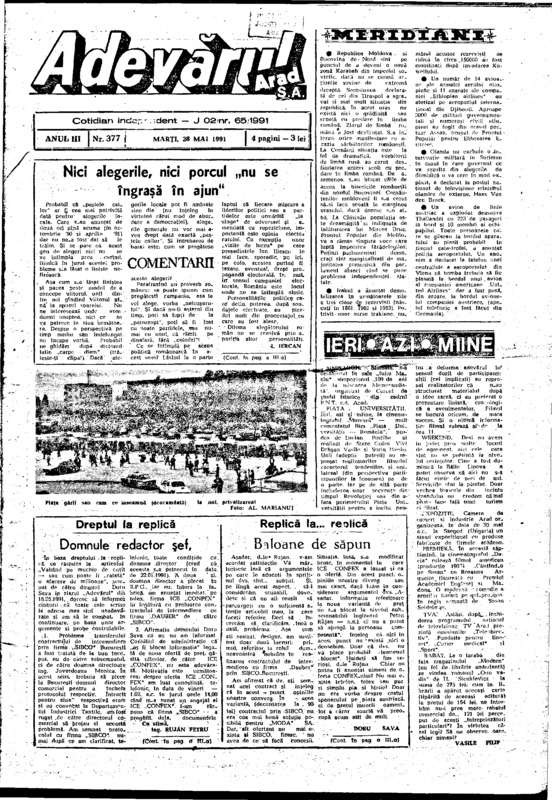 Adevărul, anul III, nr. 376, 1991-05-25/26