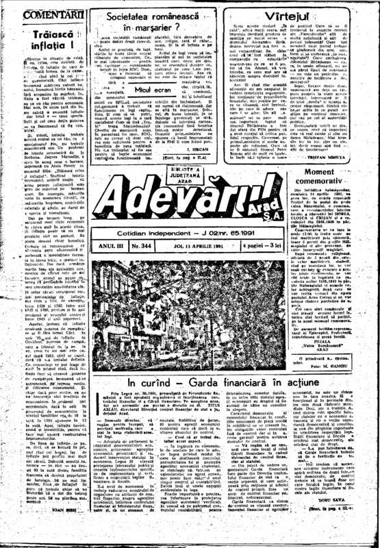 Adevărul, anul III, nr. 344, 1991-04-11