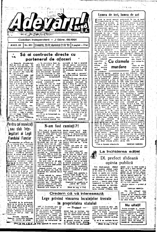 Adevărul, anul III, nr. 351, 1991-04-20/21